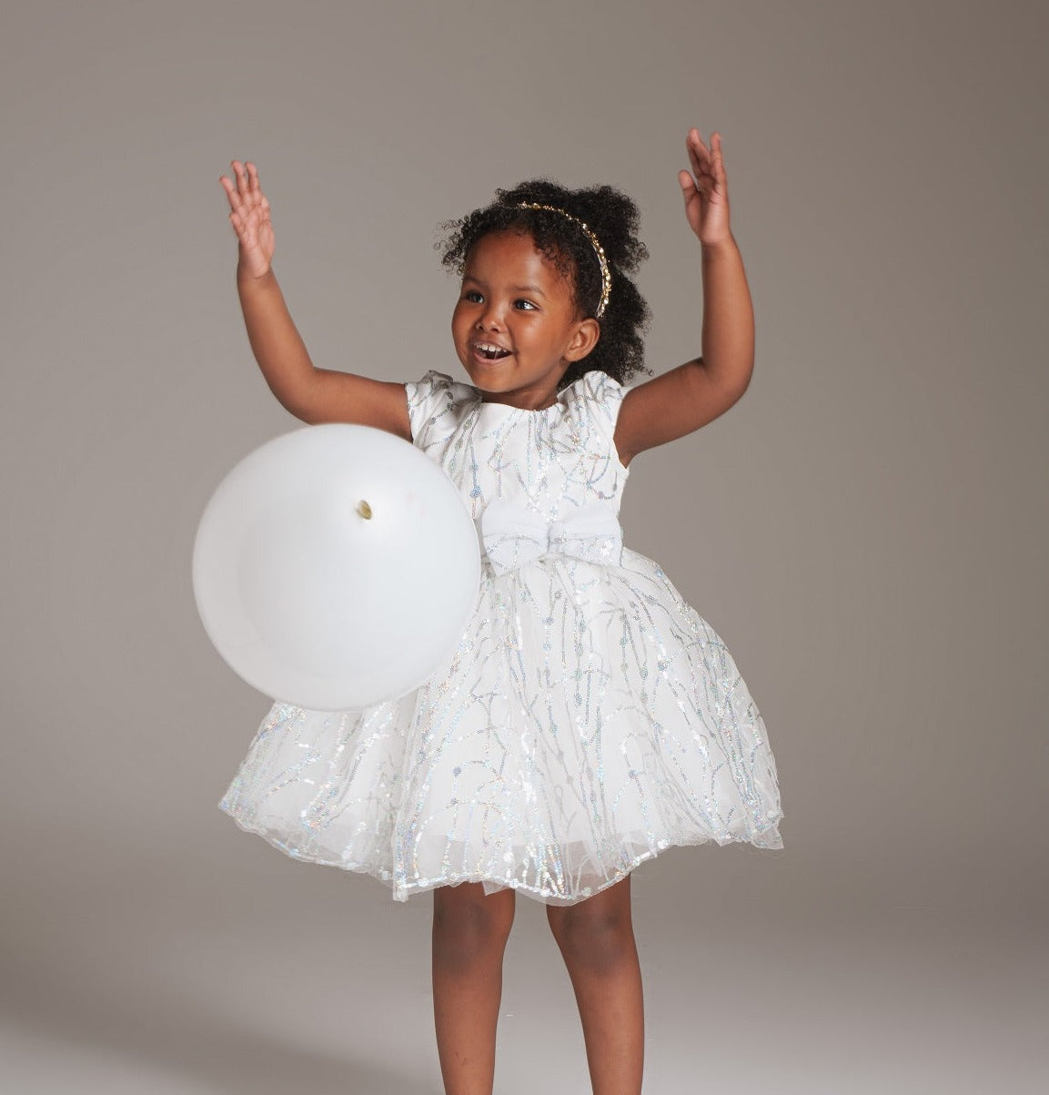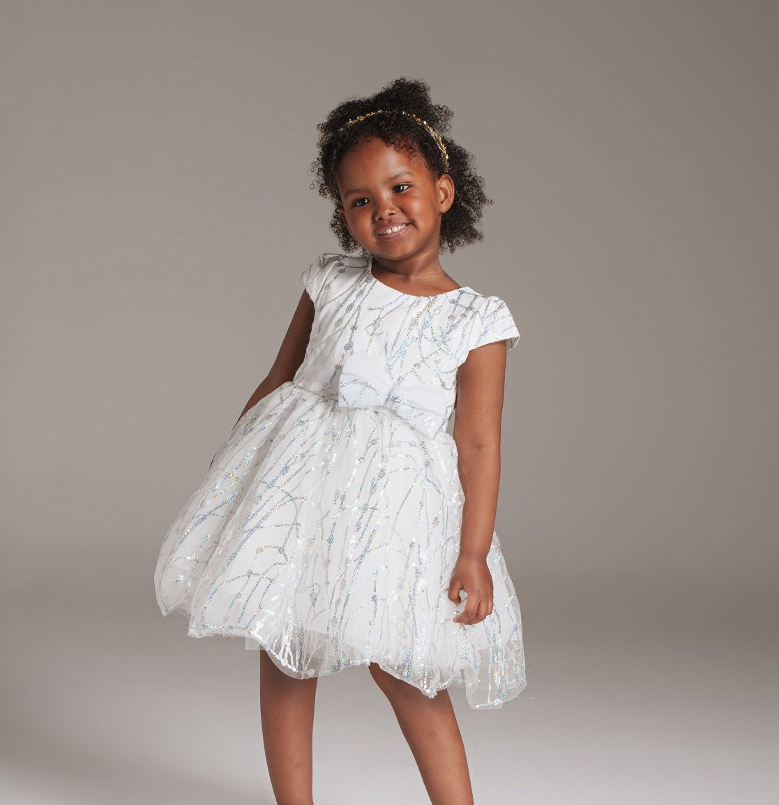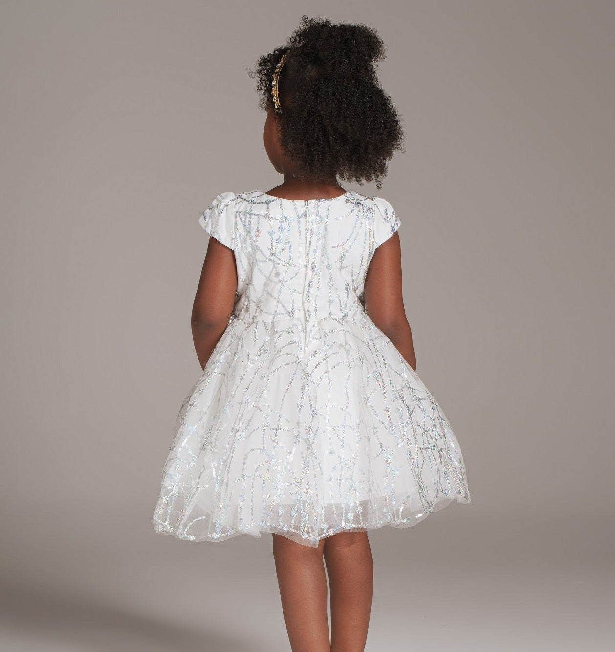 Introducing the Silver Frost Dress—an ethereal blend of winter enchantment for young fashionistas. This pristine piece features a pure white canvas adorned with delicate silver detailing, reminiscent of glistening frost. The dress captures the essence of a winter wonderland, where elegance meets playfulness. The silver accents add a touch of charm to the enchanting silhouette, making it the perfect choice for special occasions. Let the Silver Frost Dress transform any event into a whimsical celebration of timeless style for your little one.